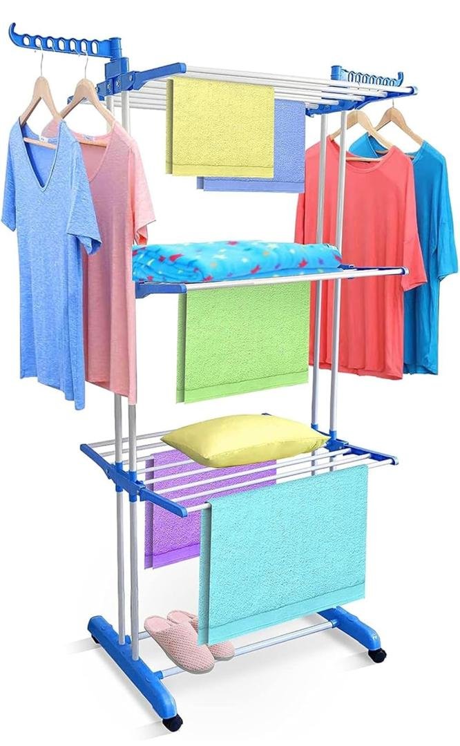 Accrochez beaucoup de vêtements et laissez-les pendre sur les rails, ils sècheront rapidement. Facile à déplacer. Facile à ranger et à transporter.